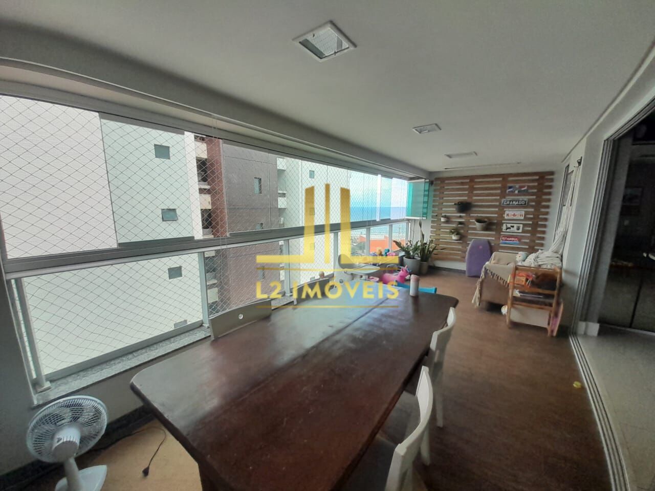 O imóvel possui 144 m² de área privativa, com 3 suítes, além de lavabo e dependência completa, oferecendo excelente distribuição e funcionalidade. Conta com varanda gourmet com vista mar, salas de estar e jantar e armários planejados em todos os ambientes.
