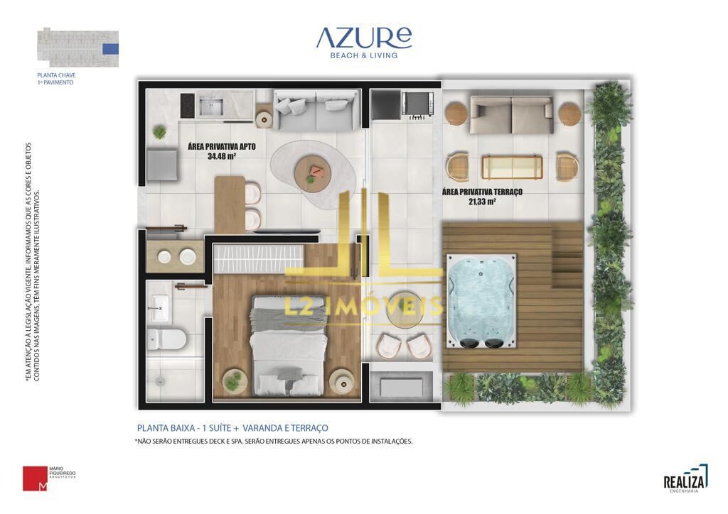 LANÇAMENTO - QUARTO E SALA FRONTAL COM TERRAÇO - 56M² - AZURE BEACH - PEDRA DO SAL