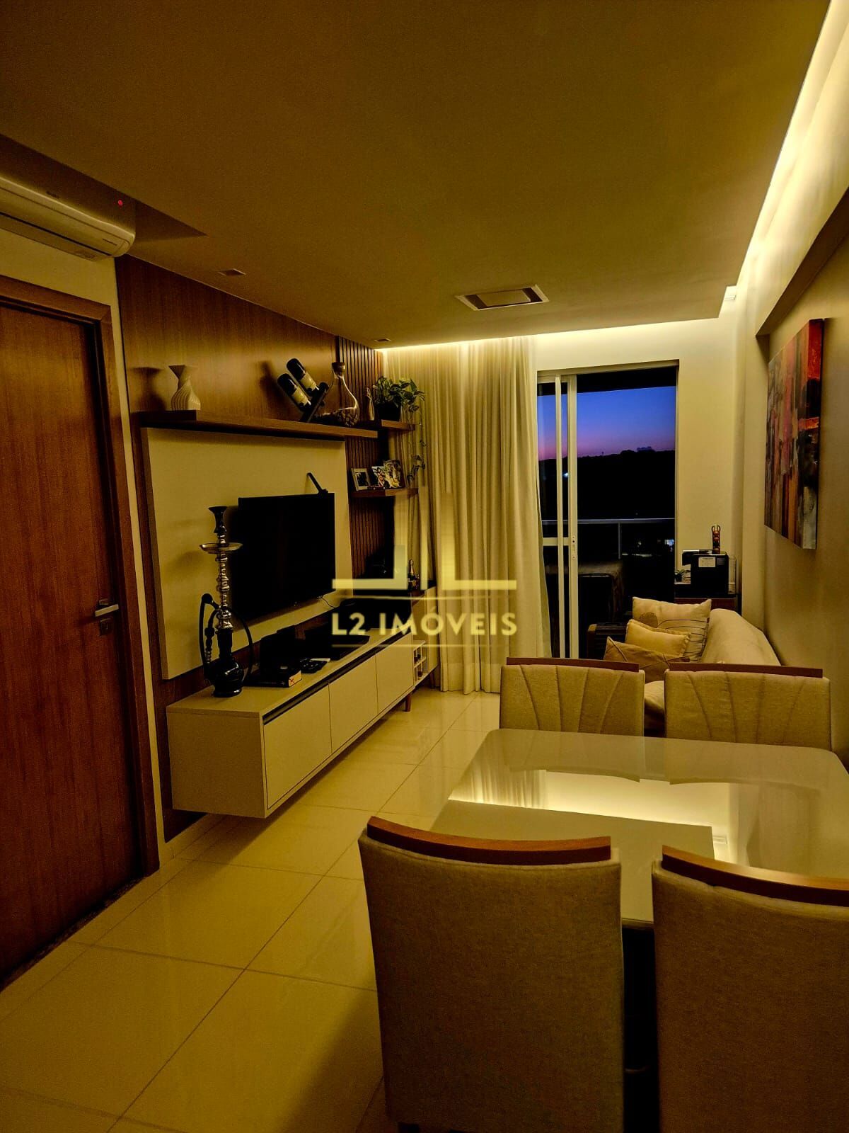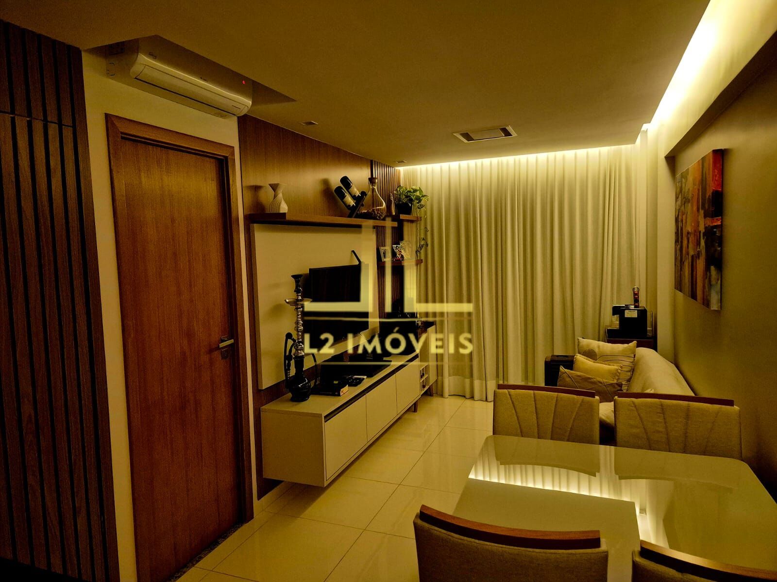 Armários planejandos, dando maior conforto e amplitude aos cômodos (excelente qualidade); Dois ares condicionados (1 de 9.000 btus e outro de 12.000 btus); Fechadura eletrônica intelbras; Varanda ampla; Suíte com porta invisível; Iluminação diferenciada; Bancadas de granitos;